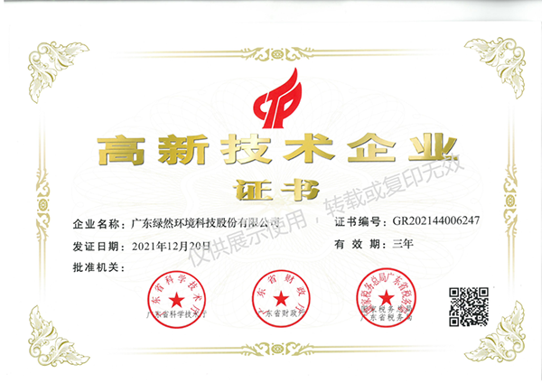 繼2018年首次獲得國家級高新技術企業(yè)認定,廣東綠然以此為契機,三年來不斷引進高層次人才,優(yōu)化人員結構、提升研發(fā)組織管理水平,加強科技成果轉化能力,取得多項實用新型專利證書,為企業(yè)持續(xù)、健康、快速發(fā)展提供有力的技術支撐。
